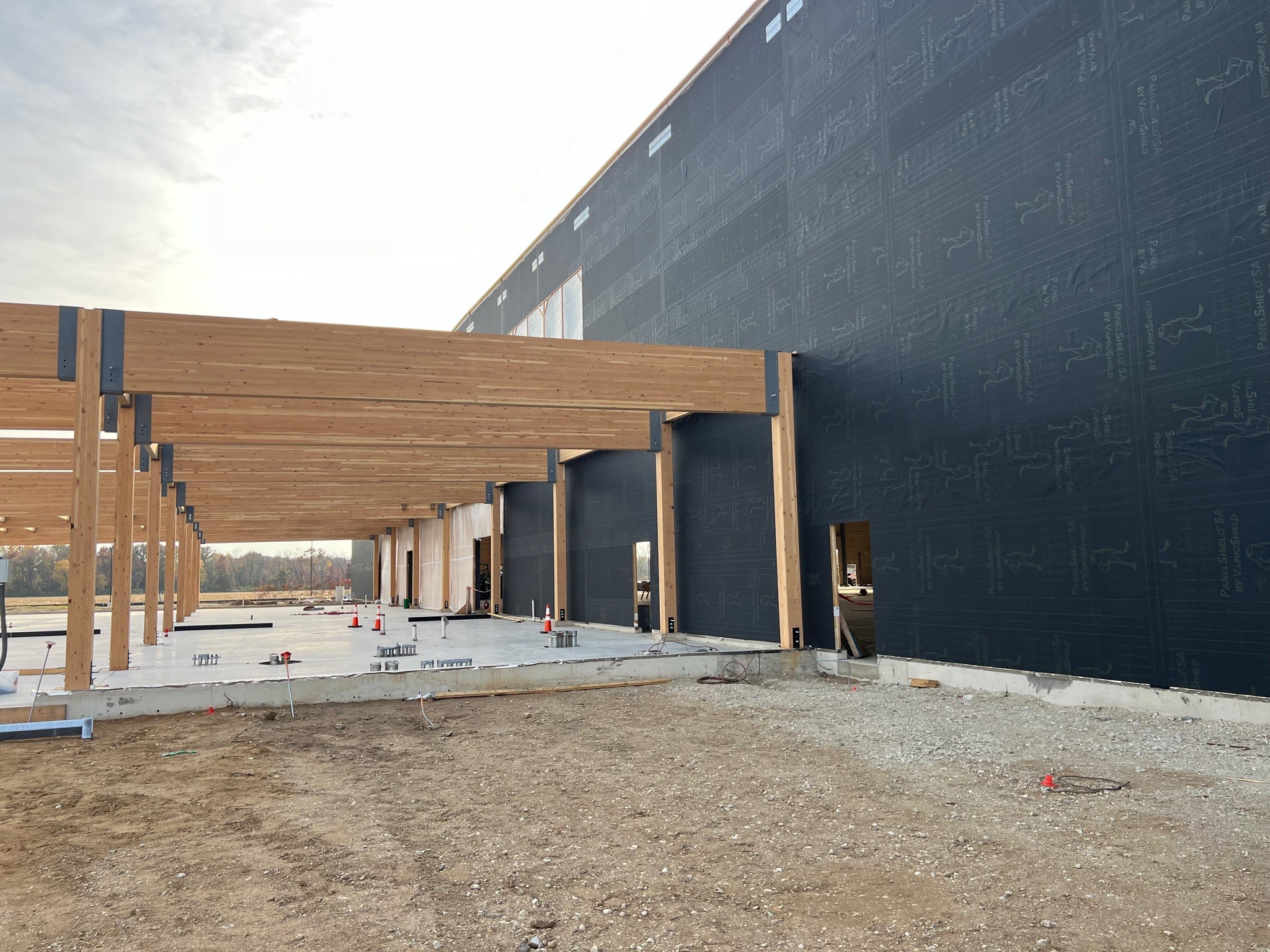 PanelShield SA protected the mass timber from moisture damage during transportation and construction, ensuring the panels arrived dry before being integrated into the structure. Its durability allows it to withstand aggressive handling, fast installation, and tough on-site conditions, while simultaneously drying the mass timber substrate.