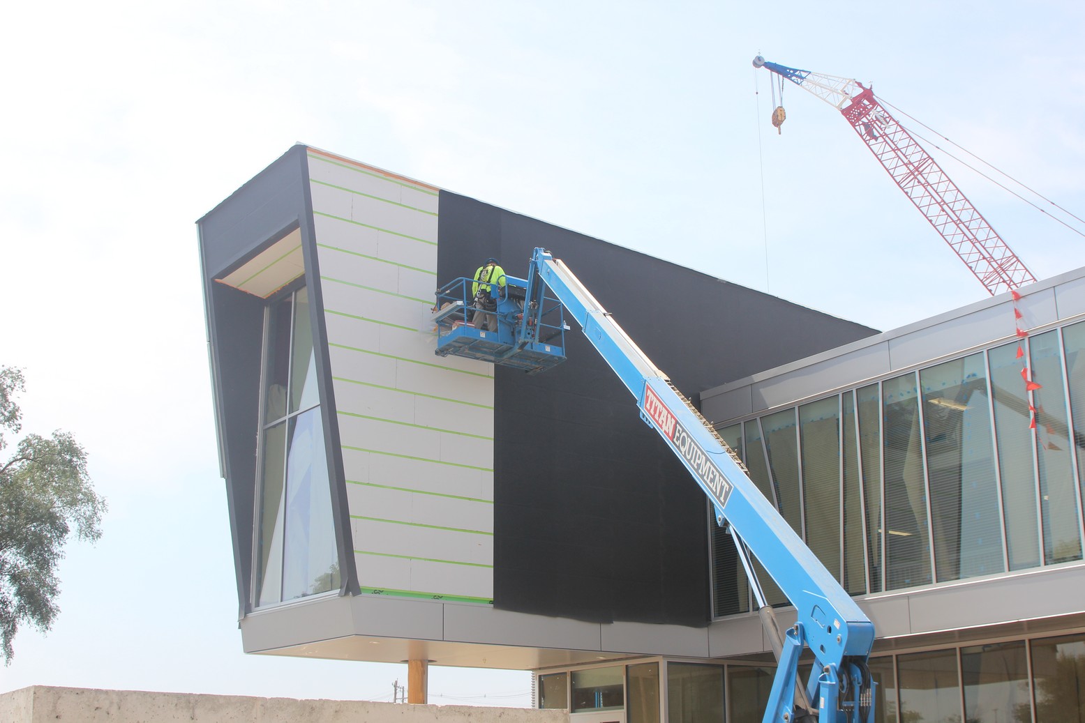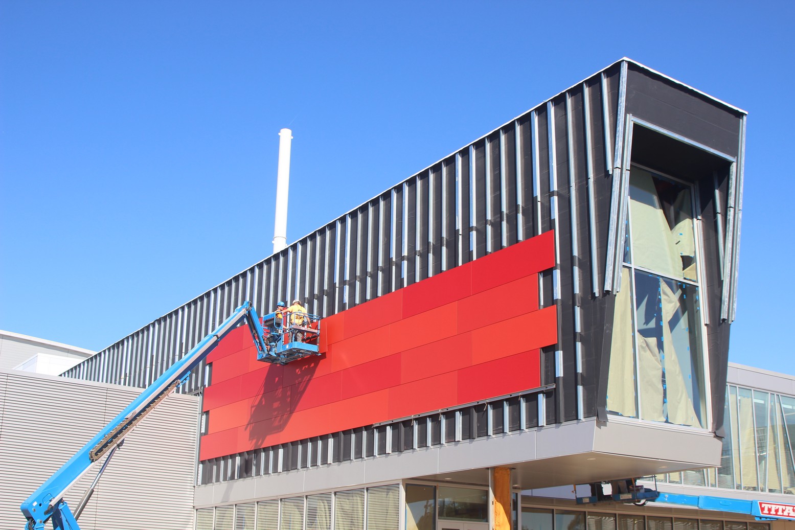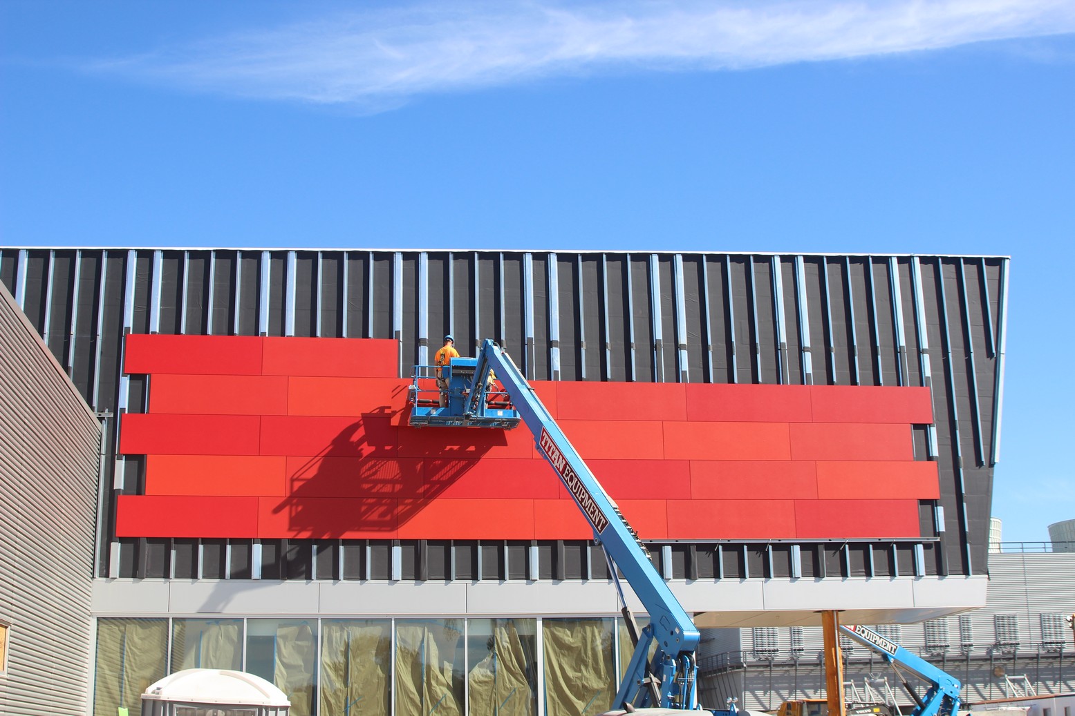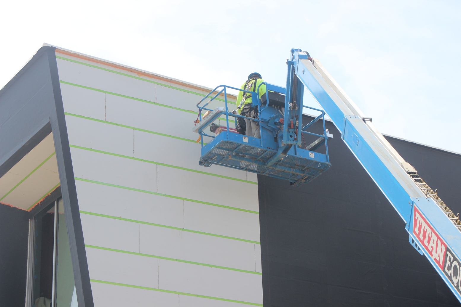 Over 10,000 sq.ft. of RevealShield SA Self-Adhered Water Resistive Vapor Permeable Air Barrier Sheet Membrane was installed over USG gypsum sheathing on the Holland Energy Park. Revealshield SA Self-Adhered is black, UV stable and creates the desired black reveal behind open-joint cladding.