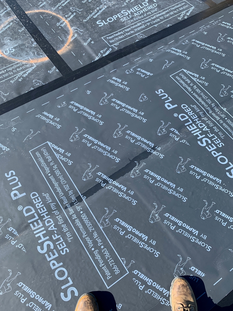SlopeShield Plus SA was the only commercially-available permeable (breathable) roofing underlayment that could accomplish all of the following with a single product; drying-in the building during the re-roof, drying any moisture that occurs between the different roofing layers, and eliminating the need for a double vapor barrier and the problems they could create.