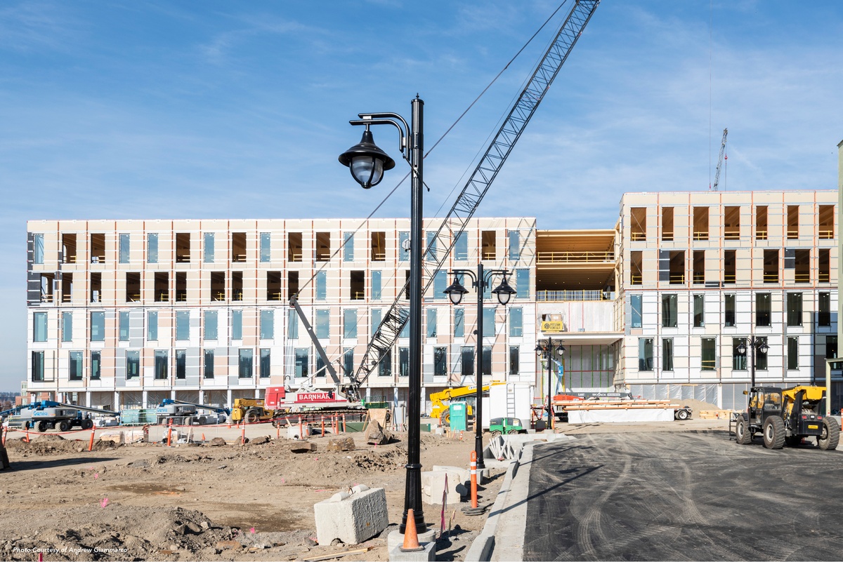 Over 50,000 sq.ft of WrapShield SA Self-Adhered air and water resistive barrier was installed on the building, located in the new South Landing “eco-district” neighborhood of Spokane, Washington.