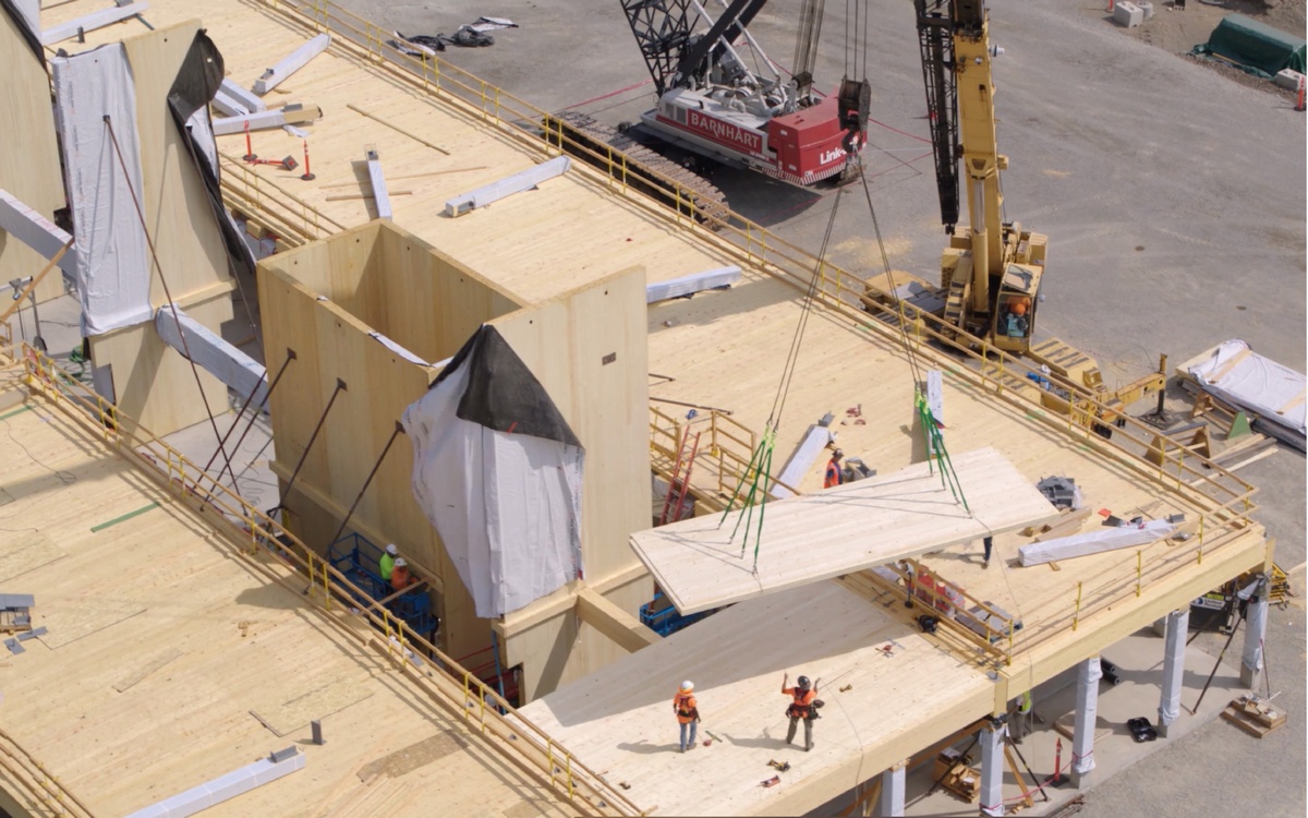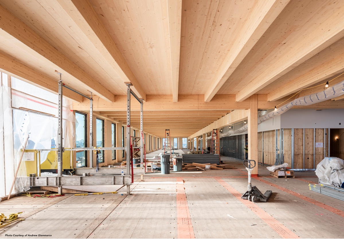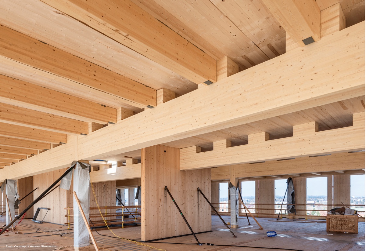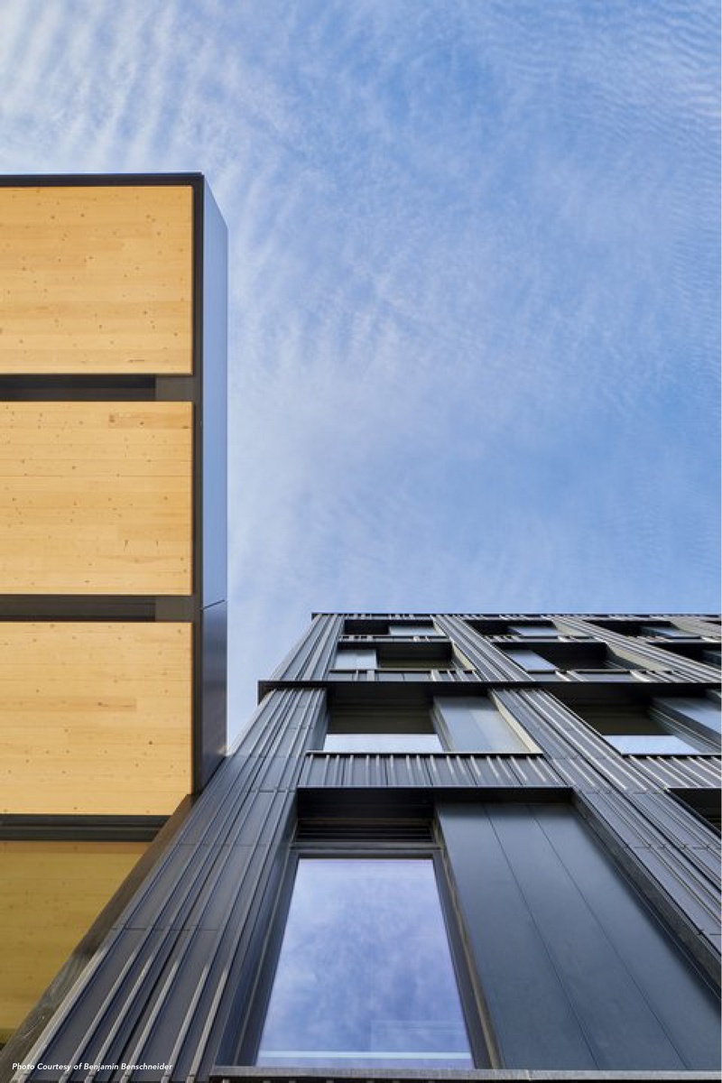 When fully adhered to a CLT substrate, WrapShield SA can improve continuity of the air barrier by resisting lateral air movement, contributing to the airtight envelope needed to meet the stringent energy goals set forth by the architect, Michael Green.