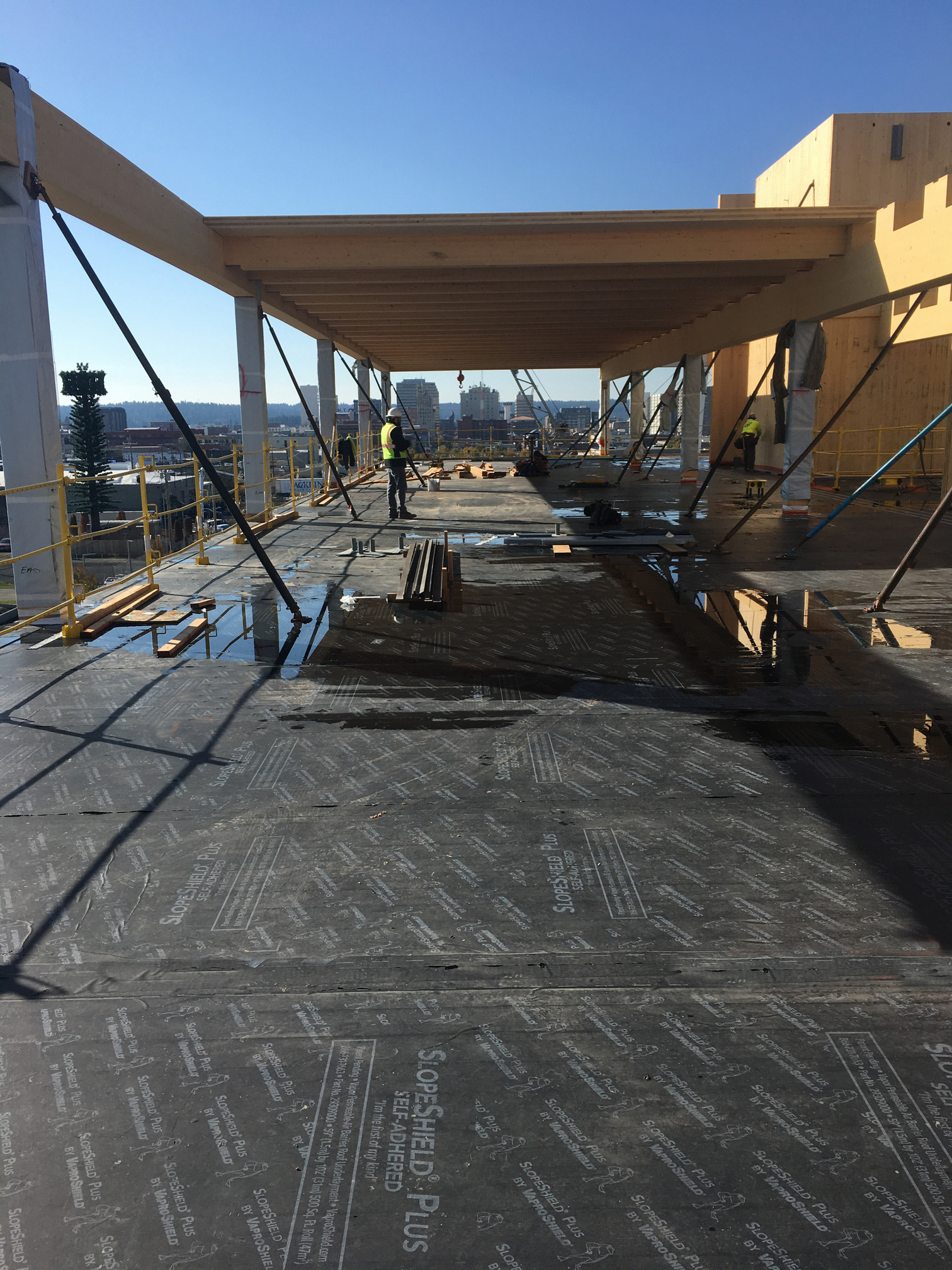 WrapShield SA Self-Adhered offers exceptionally high drying capacity, which will prove instrumental in drying out the moisture-laden CLT substrate over time.