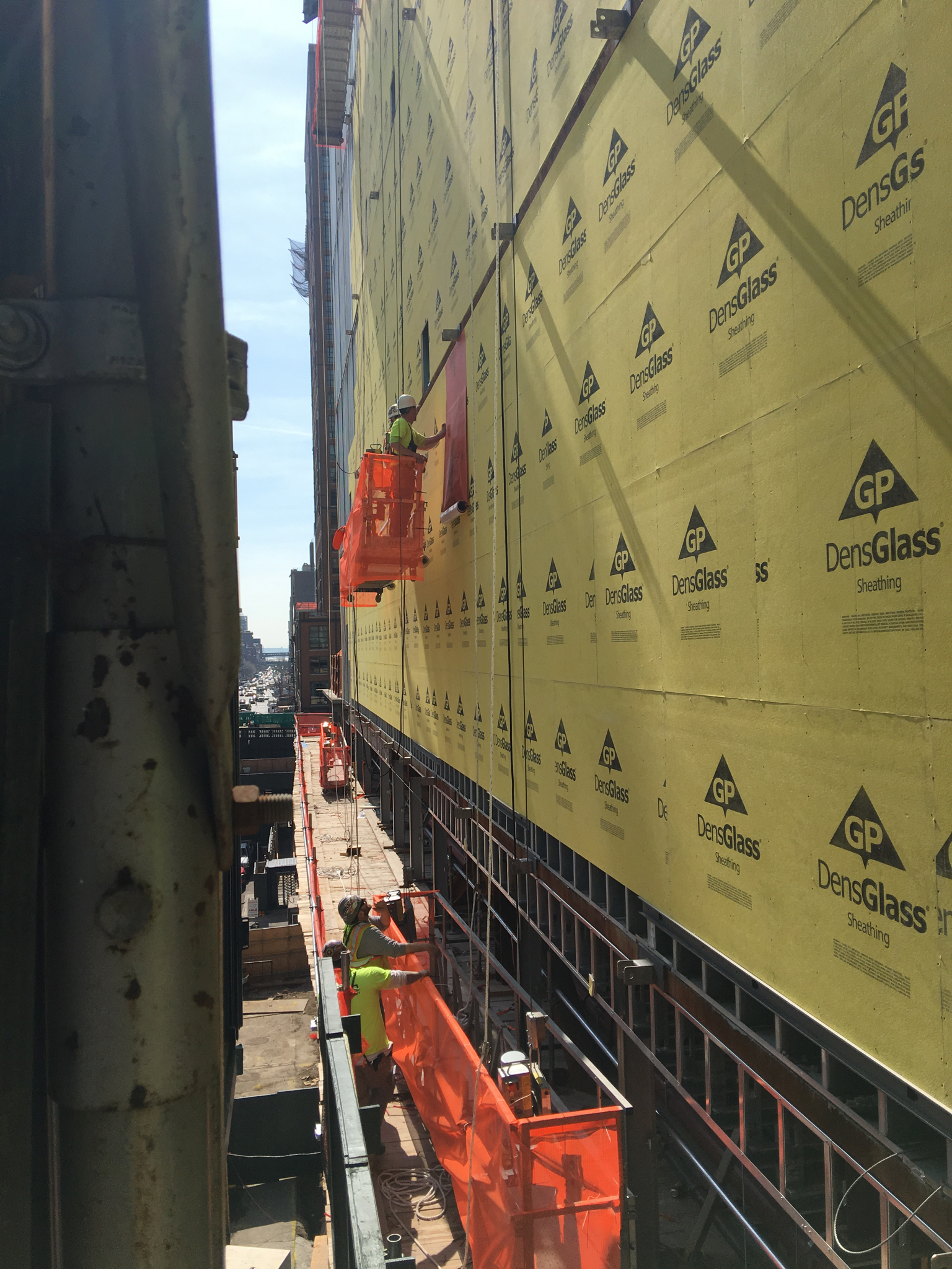 Over 40,000 sq.ft. of WrapShield SA Self-Adhered WRB/Air Barrier is being installed on Building #11 of the Hudson Yards Development in New York, New York.
