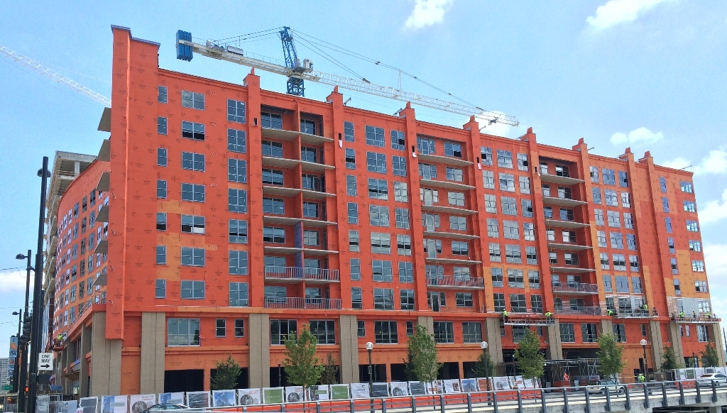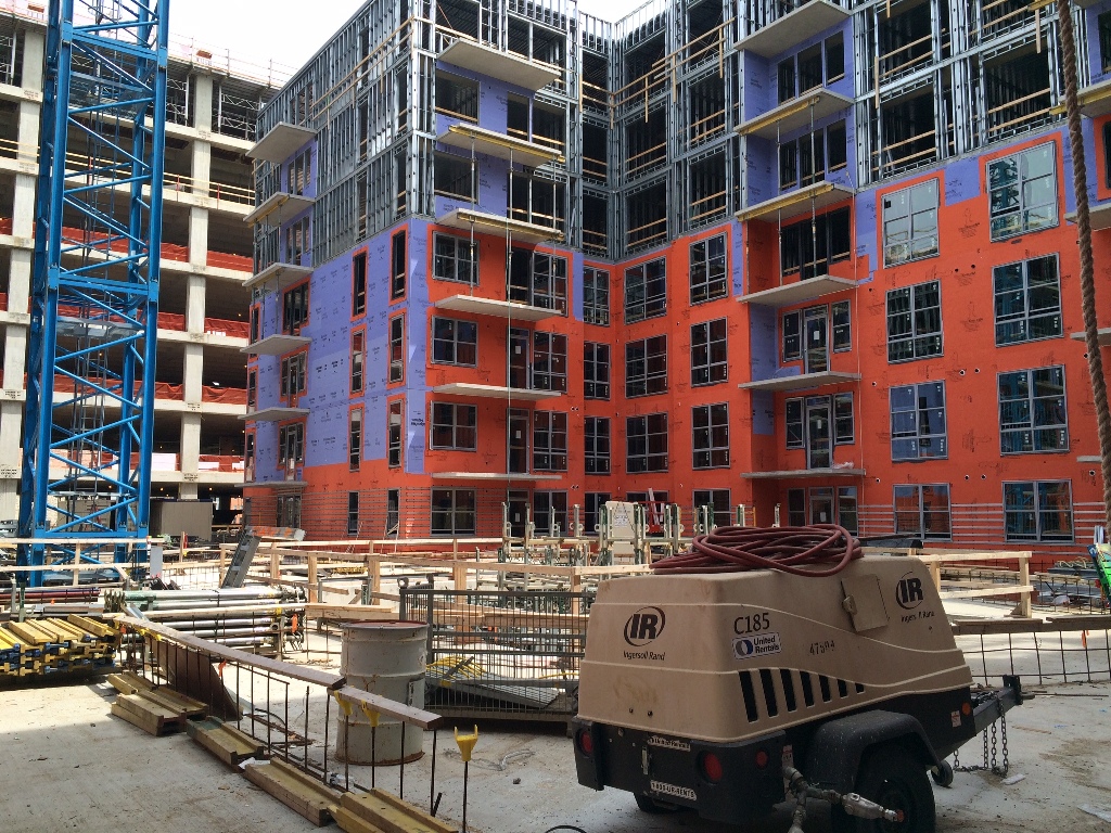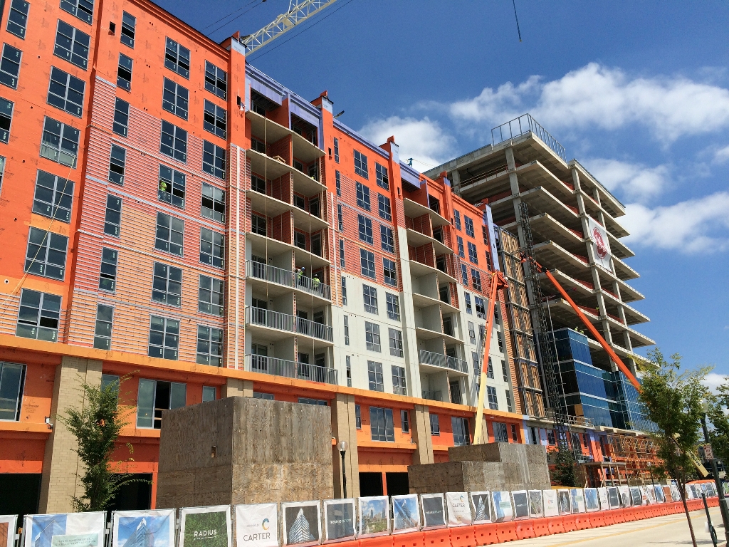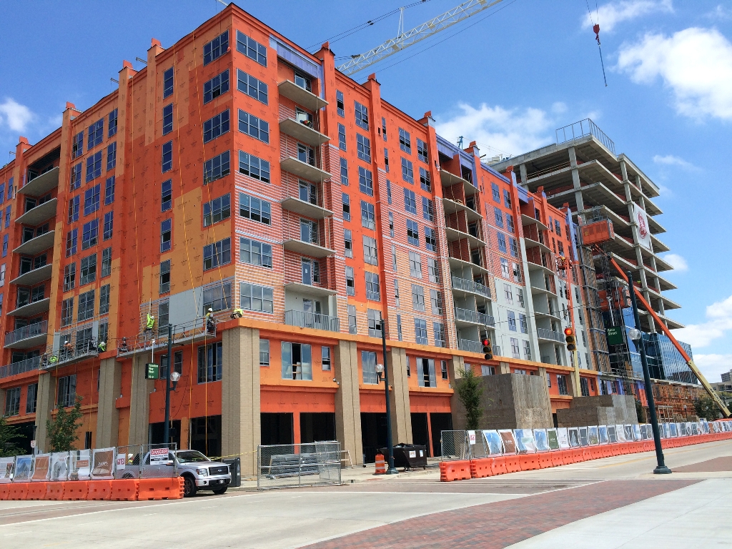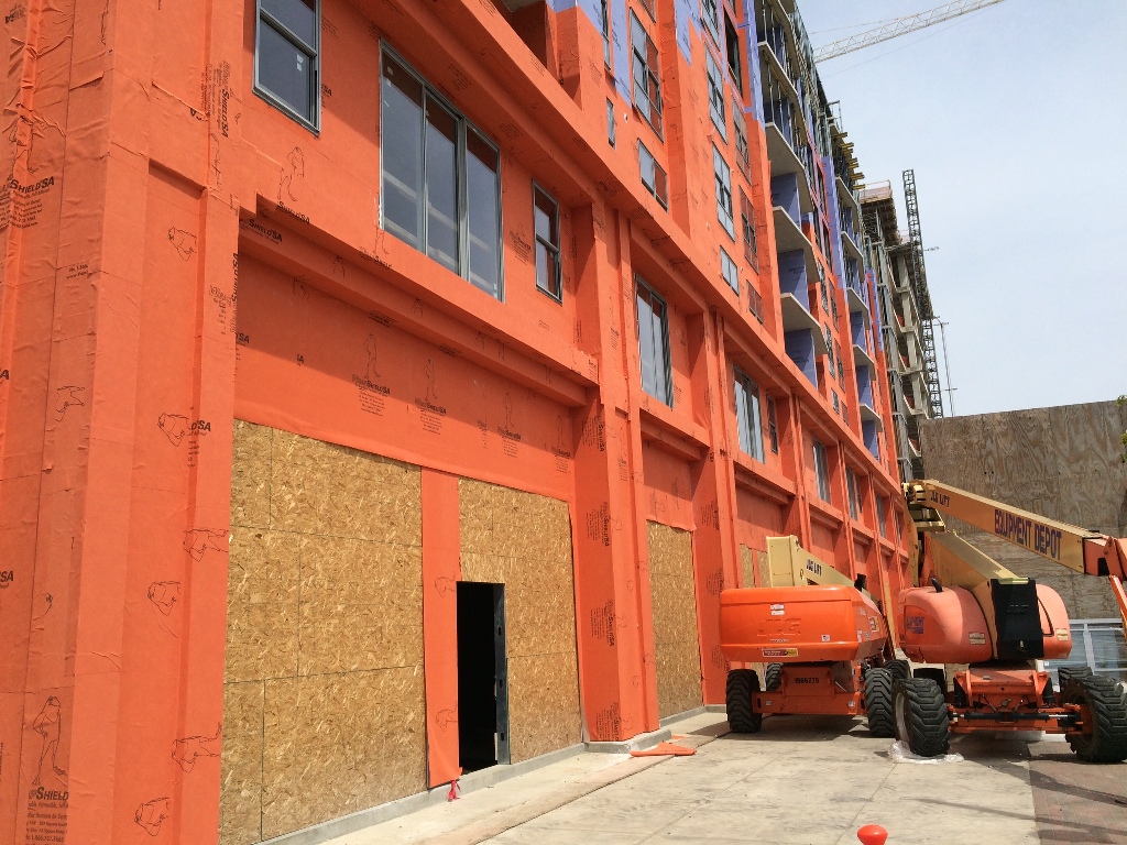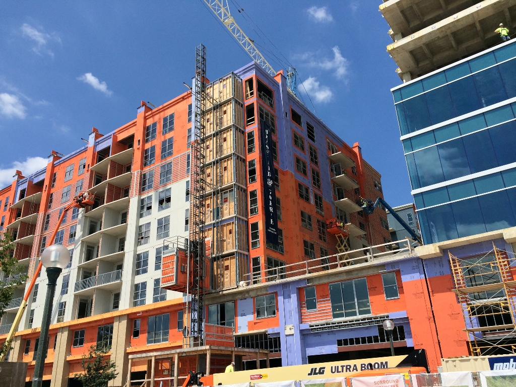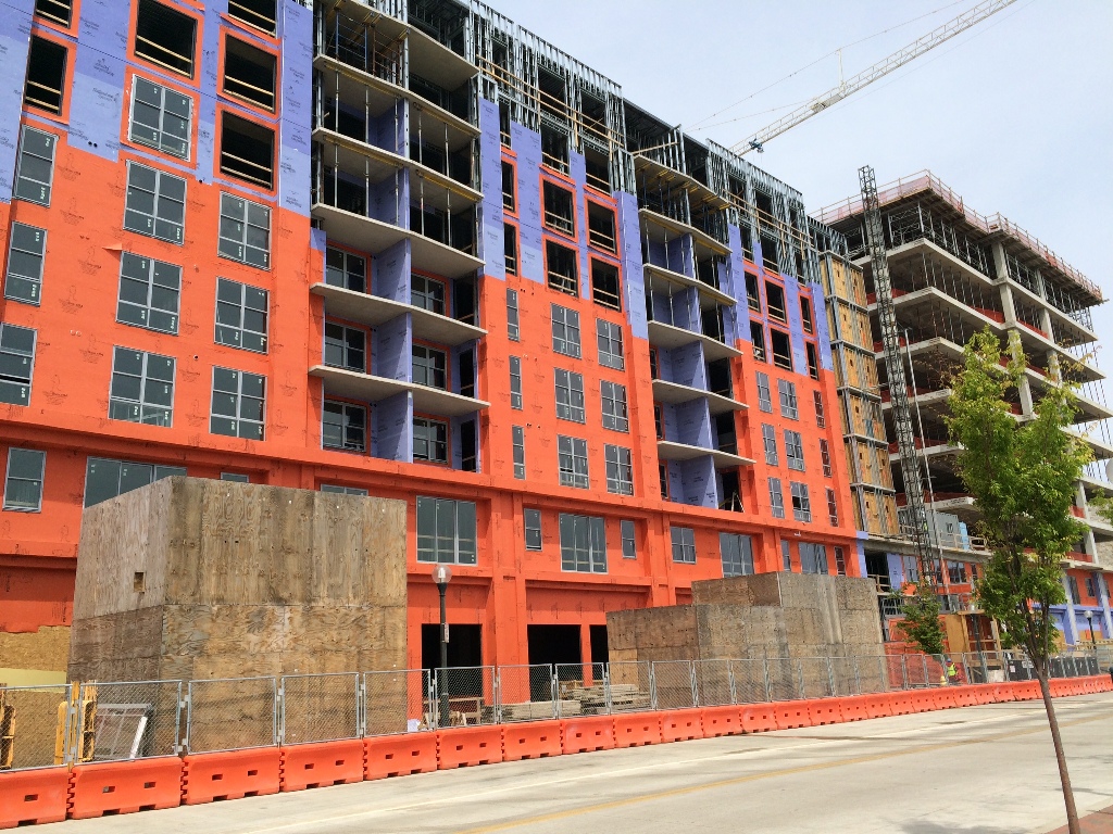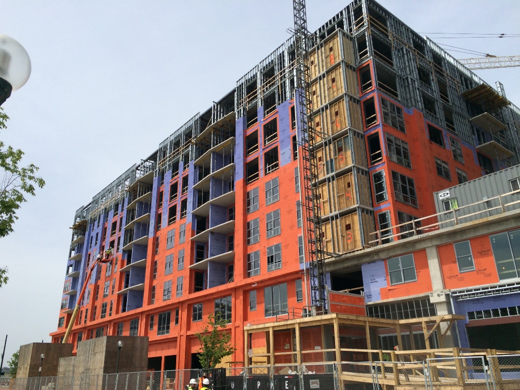 150,000 sq. ft. of WrapShield SA Self-Adhered Water Resistive Vapor Permeable Air Barrier Sheet was installed on The Radius at the Banks Mixed-Use Building.