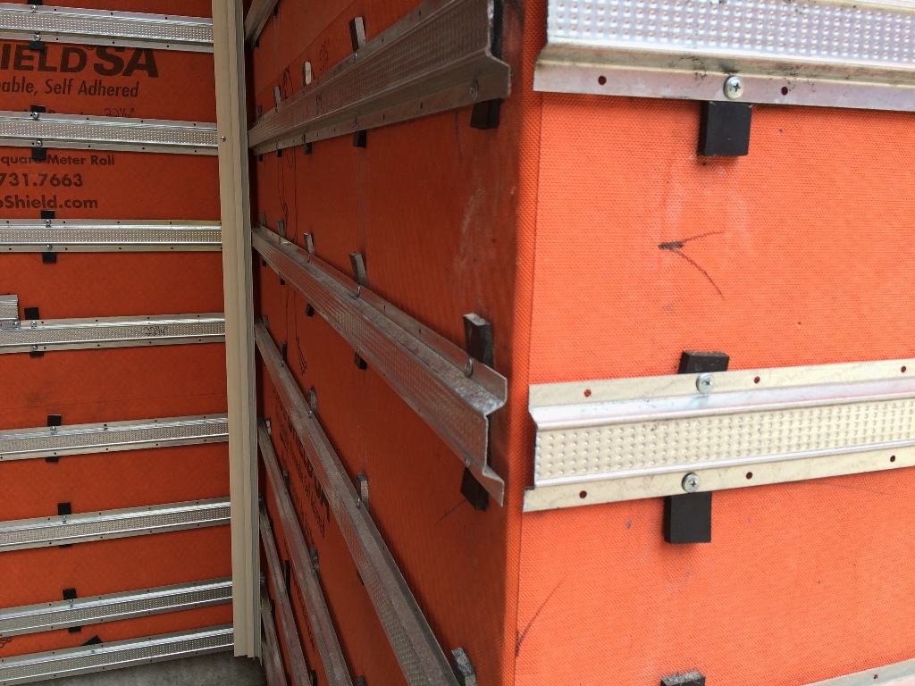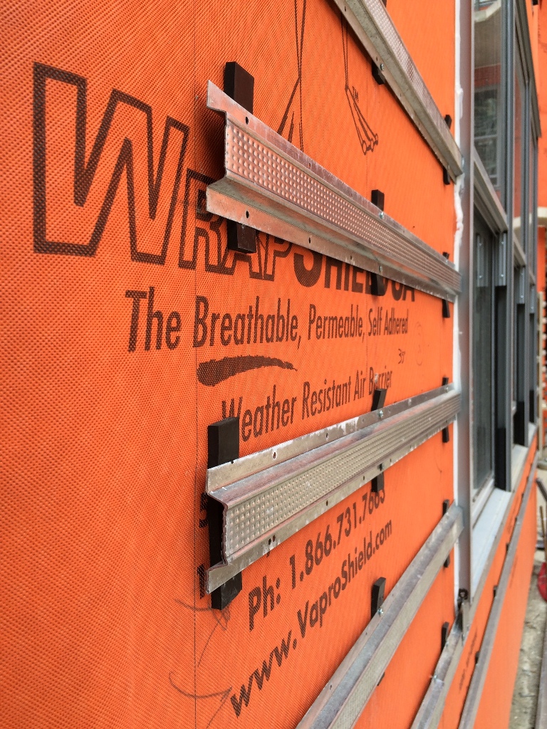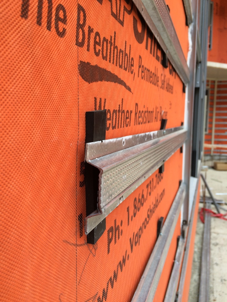 VaproShims used under horizontal cladding attachment components create a small, effective ¼” rain screen cavity, allowing for unimpeded vertical drainage of moisture away from the building envelope.