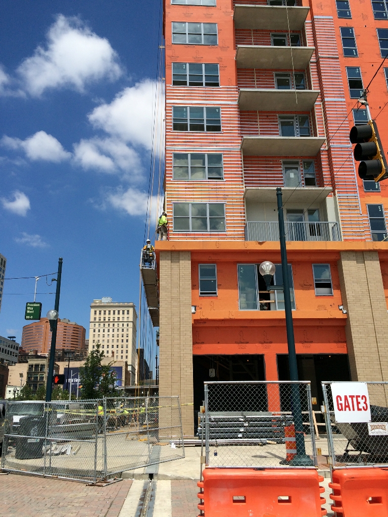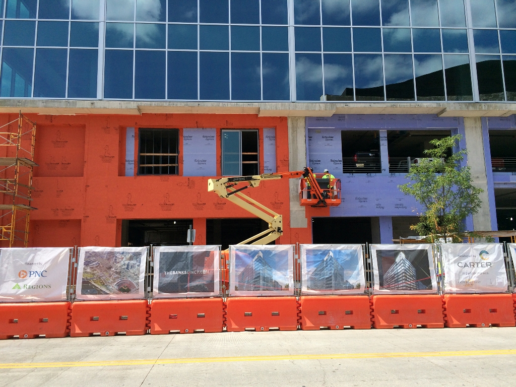 Located between Paul Brown Stadium and Great American Ballpark in downtown Cincinnati, The Radius at the Banks project is a multi-stage development featuring retail, office space, hotel rooms, and residential space. The second of three phases is a 291 apartment mixed-use building that also features 20,000 sq ft of retail space. By switching to the versatile, labor and cost saving WrapShield SA, Phase II of The Banks aims to be completed by the end of 2015.