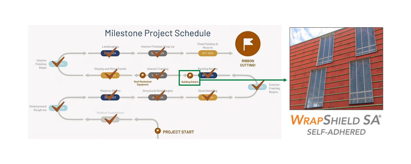 Installed behind a fiberglass z-girt system, WrapShield SA facilitated optimal airflow, enhancing the drying capacity of the structure and creating a thermal break to increase energy efficiency. WrapShield SA eliminated the need for tapes and fillers, preventing thermal bridging and ensuring long-term protection. The combination of WrapShield SA and the fiberglass girt system delivered superior energy efficiency and durability, meeting all project goals. As an ASTM E2357-tested solution, it also passed stringent air infiltration tests, ensuring the building envelope's performance.